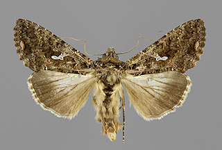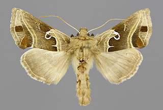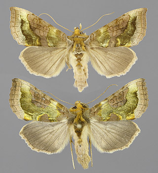 Autographa gamma, gammayökkönen kuuluu sukuryhmään metalliyökköset (Plusiinae, Plusiini)