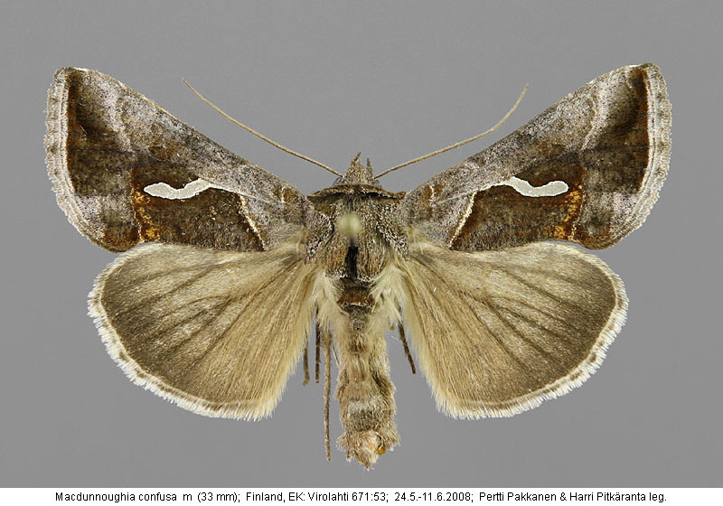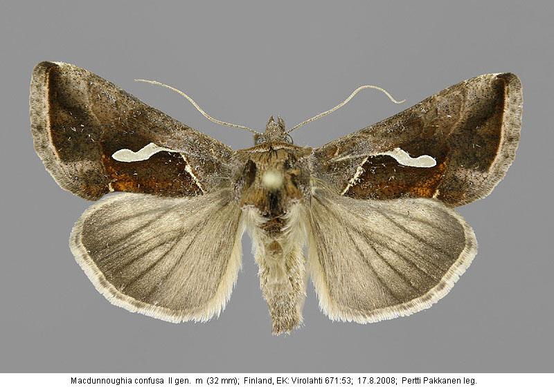 | Nykyinen voimassa oleva lajinimi - (Kullberg et. al. 2002): Macdunnoughia Kostrowicki, 1961 confusa (Stephens, 1850) | ||||||||||||||