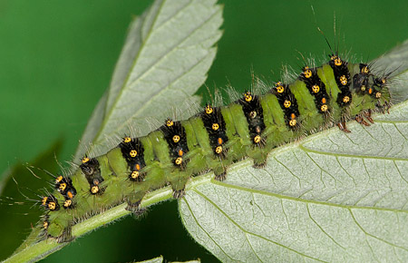niissä voi olla nystyröitä erilaisine okineen. (joillakin ulkolaisilla lajeilla voi olla jopa poltinkarvoja) Riikinkukkokehrääjän toukka (Saturnia pavonia) |