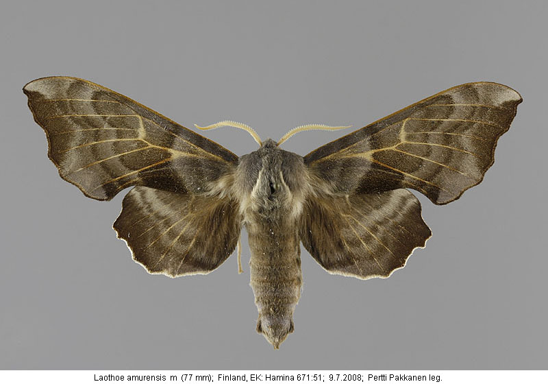 | Nykyinen voimassa oleva lajinimi - (Kullberg et. al. 2002): Laothoe Fabricius, 1807 amurensis (Staudinger, 1892) | ||||||||||||||||||||||||||