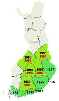 | Maakuntien havaintovuodet | Suomen hyönteistietokanta | ||||||||||||